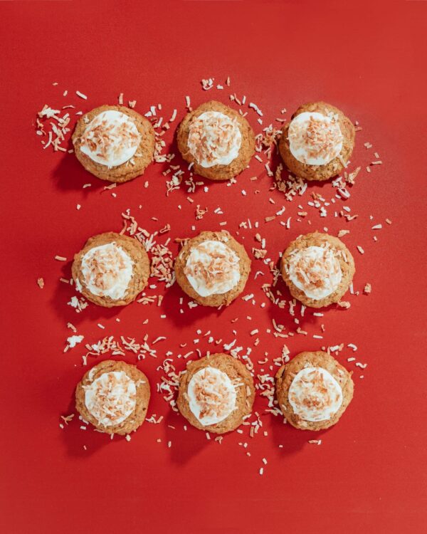 Coconut carrot curry with coconut cream, topped with a haystack of toasted coconut. Unbelievable!